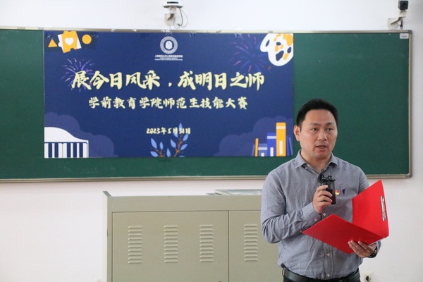 評(píng)委代表汪磊就初賽中參賽選手的表現(xiàn)作出點(diǎn)評(píng)。他勉勵(lì)各參賽選手繼續(xù)秉承“慈幼善育 傳承創(chuàng)新”的院訓(xùn),不斷磨練專(zhuān)業(yè)本領(lǐng)、厚實(shí)專(zhuān)業(yè)素養(yǎng),為培養(yǎng)德智體美勞全面發(fā)展的中國(guó)特色社會(huì)主義合格建設(shè)者和可靠接班人貢獻(xiàn)學(xué)前力量。