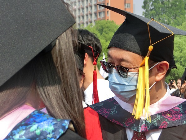 典禮結(jié)束,同學(xué)們紛紛尋找身邊的伙伴、導(dǎo)師漫步師大校園,合影留念,定格最美的青春記憶。同學(xué)們自發(fā)向?qū)焸儷I(xiàn)花,言語(yǔ)間滿是說(shuō)不盡的感恩;與朝夕相處的同伴相擁離別,共同訴說(shuō)著在師大度過(guò)的最難忘的青春歲月,分享著彼此對(duì)未來(lái)最美好的憧憬展望。