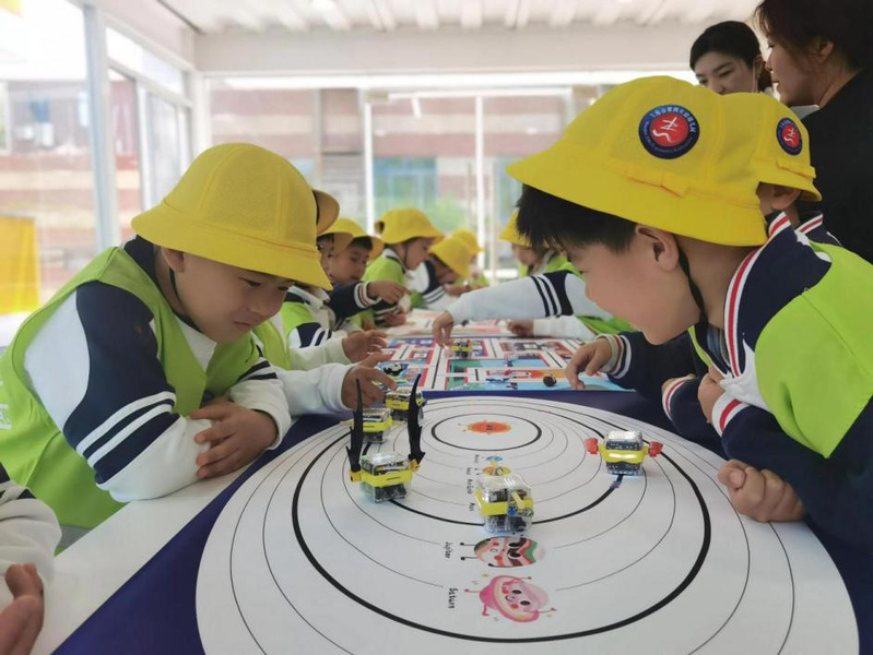 學(xué)院以學(xué)前兒童發(fā)展與教育研究中心研發(fā)的學(xué)前兒童社會(huì)與情緒活動(dòng)項(xiàng)目為載體,帶領(lǐng)幼兒走進(jìn)嘟嘟機(jī)器人編程課堂,激發(fā)了幼兒的好奇心和求知欲,展現(xiàn)了“高校+幼兒園”共建互融的優(yōu)勢(shì)。在課堂中,學(xué)院研究生志愿者先進(jìn)行了簡(jiǎn)單講解,然后引導(dǎo)幼兒觀察各式各樣、形態(tài)迥異的機(jī)器人在地圖上的行走路線和前進(jìn)方式,鼓勵(lì)他們展開討論和交流。針對(duì)幼兒的疑惑,志愿者一一耐心解答。觀察和互動(dòng)進(jìn)一步激發(fā)了幼兒對(duì)科技持續(xù)探索的熱情與激情,培養(yǎng)和鍛煉了幼兒的邏輯思維能力和創(chuàng)造力。