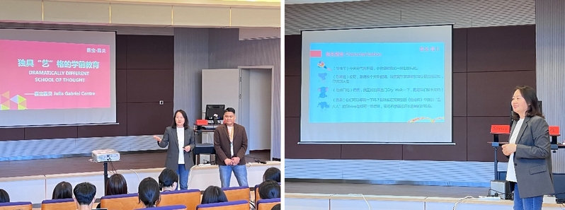 為進(jìn)一步拓展就業(yè)崗位、暢通就業(yè)渠道,做好學(xué)前師范生就業(yè)宣講工作,4月24日下午,學(xué)院邀請(qǐng)上海嘉寶幼兒園于奉賢校區(qū)科技樓B座201舉行了題為“獨(dú)具‘藝’格的學(xué)前教育”的講座。嘉寶幼兒園倩倩老師、外教Silvino老師主講,輔導(dǎo)員何坤鵬主持,實(shí)習(xí)輔導(dǎo)員和2021級(jí)、2022級(jí)本科生共計(jì)100余人參加。