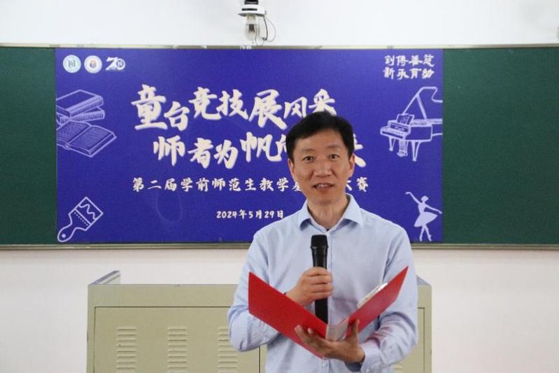 評委導(dǎo)師代表汪磊就初賽選手的表現(xiàn)做出總結(jié)與期望。他對初賽中學(xué)前學(xué)子們展現(xiàn)出的扎實的專業(yè)素養(yǎng)以及銳意進取的精神面貌表示充分的肯定,并希望學(xué)前青年們通過本次大賽不斷提升專業(yè)素養(yǎng),精進專業(yè)技能,涵養(yǎng)師德情懷,回答好教師專業(yè)發(fā)展與教育高質(zhì)量發(fā)展的時代命題,成為能夠為幼兒扣好人生第一??圩拥奈磥碛變航處?。