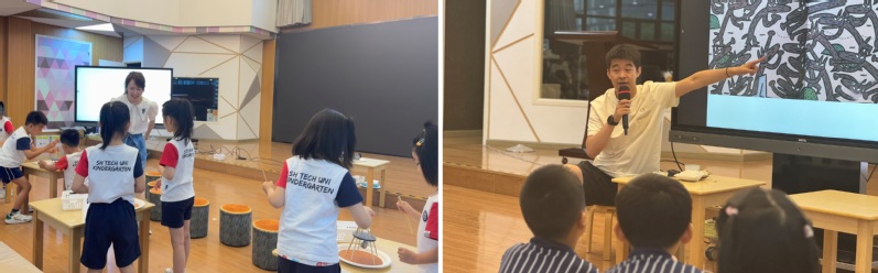 上??萍即髮W附屬幼兒園在游戲、運動和生活等課程結構的基礎上融合了科學啟智和藝術教育等特色內容,為幼兒提供個性化興趣活動。在園長毛美娟及骨干教師們的帶領下,學院師生參觀了園所環(huán)境創(chuàng)設、恒溫游泳池、種植試驗區(qū)和科創(chuàng)室、建構室、美工室等多個特色活動室,感受了幼兒園濃厚的文化氛圍。