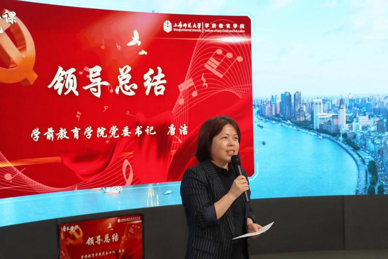 學(xué)院黨委書(shū)記唐潔進(jìn)行了總結(jié)發(fā)言,充分肯定了教工第一黨支部黨員教師發(fā)揮藝術(shù)教育專長(zhǎng)、組織師生開(kāi)展的音樂(lè)黨課,也希望各支部在黨日活動(dòng)中進(jìn)一步探索黨建與業(yè)務(wù)深度融合,進(jìn)行更多富有成效的探索和創(chuàng)新。她向全體黨員傳達(dá)了上海師范大學(xué)第八次黨代會(huì)確定的未來(lái)五年的發(fā)展目標(biāo),號(hào)召師生黨員將思想統(tǒng)一到學(xué)校黨代會(huì)精神上來(lái),更好圍繞“基礎(chǔ)教育基點(diǎn)”和“高等教育龍頭”的雙重使命,凝心聚力,砥礪奮進(jìn),在全面開(kāi)啟建設(shè)教師教育領(lǐng)先的創(chuàng)新型高水平大學(xué)的新征程上交出kaiyun體育登錄網(wǎng)頁(yè)入口的一份答卷。