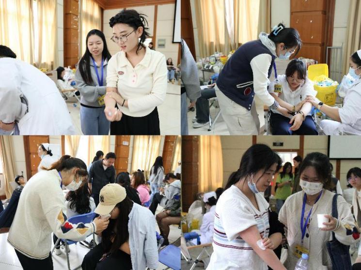 現(xiàn)場志愿者們與醫(yī)護人員緊密配合,保障獻血工作有序、順利開展。他們在現(xiàn)場忙碌穿梭,用耐心和熱情引導著同學們有序參與獻血,并及時為大家送上紅糖水、面包等補給,幫助同學們在第一時間補充體力。