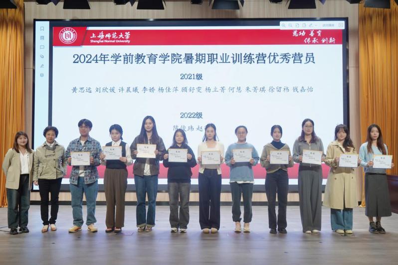 高湘萍代表學(xué)院對黃思遠(yuǎn)、劉欣媛、許晨曦等13名榮獲“上海師范大學(xué)暑期職業(yè)訓(xùn)練營優(yōu)秀營員稱號”的同學(xué)們進(jìn)行了表彰。