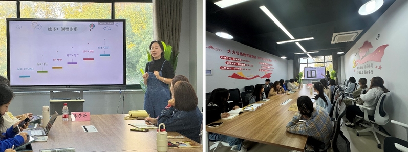 在第一期培訓中,李莎莎老師通過互動提問引導志愿者們分享對繪本的認識,并巧妙引出活動主題——繪本的構成與閱讀知識。她以繪本《煙花》和《爺爺總會有辦法》為例,探討圖文關系及挑選繪本的技巧,強調內容需貼近幼兒生活并符合幼兒最近發(fā)展區(qū)。隨后,李老師結合“繪本+”的多元課程模式,啟發(fā)大家如何開展讀后拓展活動,如手工、畫畫等。最后,她總結“大帶小”“悅”讀核心理念,強調在“玩”中提升認知能力。本次培訓讓志愿者們深入了解繪本及其拓展應用,為后續(xù)活動奠定了扎實基礎。