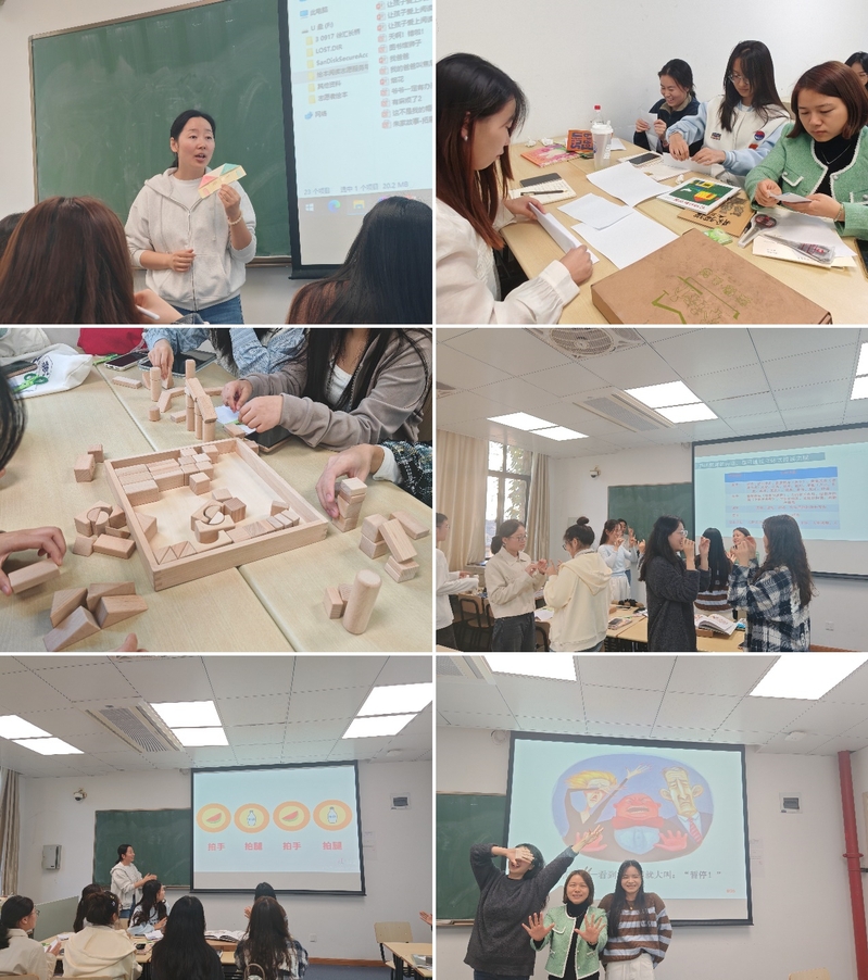 在第二、三期培訓中,李莎莎老師通過詳細講解互動式分享閱讀的要素及其重要性,并結合示范、繪本閱讀和“找不同”游戲,引導志愿者們提升觀察力和思考能力。在折紙魔術環(huán)節(jié),莎莎老師展示了將閱讀與手工相結合的方法,激發(fā)了大家的創(chuàng)意與互動熱情。隨后,志愿者們分組參與積木比賽,在鍛煉團隊合作和空間想象力的同時,學習了如何通過游戲培養(yǎng)幼兒責任感的方法。此外,莎莎老師帶讀了多部經典繪本,分享了多樣化的教學策略,并通過統(tǒng)感手指舞帶領大家放松身心?;顒幼詈?,她贈書致謝,志愿者們表示受益匪淺,對互動式分享閱讀的未來實踐和帶讀活動充滿信心與期待。