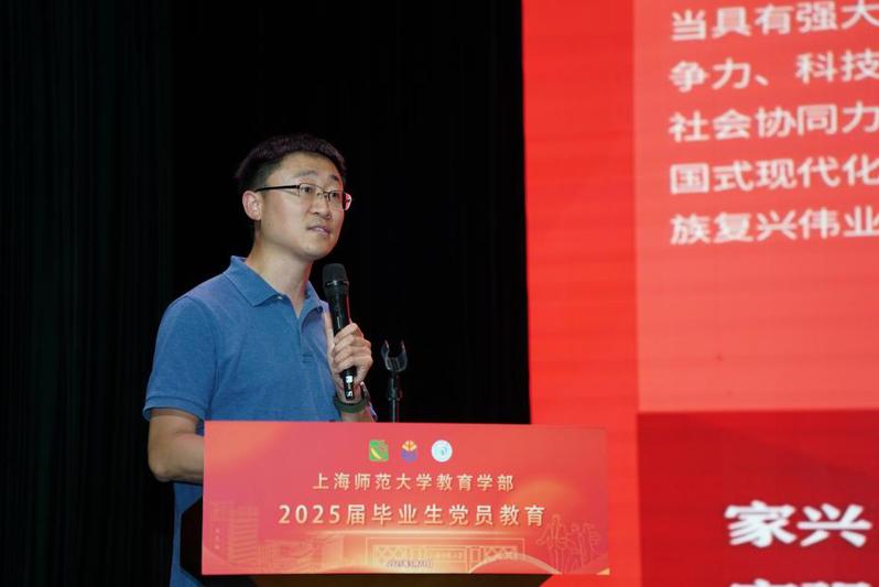 心理學(xué)院青年教師李海江副教授為畢業(yè)生帶來專題黨課《青年挺膺擔(dān)當(dāng),奮進(jìn)教育強國新征程》,闡述了教育作為國之大計、黨之大計的重要意義。他寄語畢業(yè)生黨員,作為教育學(xué)部的學(xué)子,要肩負(fù)“為黨育人、為國育才” 的光榮使命,希望同學(xué)們深刻認(rèn)識到青年黨員在教育強國建設(shè)中的重要使命,以挺膺之姿投身教育事業(yè)。