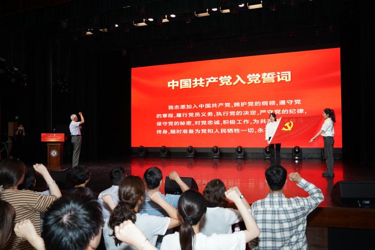在教育學(xué)院特邀黨建組織員謝利民老師的帶領(lǐng)下,全體黨員起立,莊嚴(yán)重溫入黨誓詞。鏗鏘有力的誓言回蕩在音樂廳內(nèi),提醒著各位黨員同志始終牢記入黨時的錚錚誓言,做一名無愧于黨和人民的合格黨員。