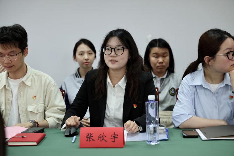 結(jié)對(duì)黨員代表張欣宇結(jié)合自身參與專(zhuān)業(yè)學(xué)習(xí)、公益項(xiàng)目、社會(huì)實(shí)踐以及科研創(chuàng)新等活動(dòng)的成長(zhǎng)經(jīng)歷,分享了她對(duì)黨員身份的理解,號(hào)召同學(xué)們?cè)谠鶎?zhuān)業(yè)的同時(shí),以青春力量服務(wù)社會(huì)、展現(xiàn)青年擔(dān)當(dāng)。