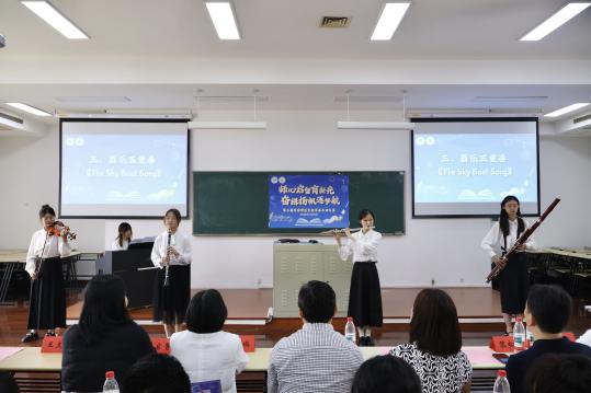 學院學生代表帶來了開場合唱表演《萱草花》,傳遞出未來學前教師以耐心與愛守護幼兒健康成長的深刻內(nèi)涵;2022級本科生夏辰熙作為優(yōu)秀選手代表帶來了模擬課堂展示,她融入舞蹈教學、故事講述、聲樂等多方面專業(yè)內(nèi)容,以生動的教學情境詮釋了“以童心育童心”的教育理念;學生代表編排的器樂五重奏《The Sky Boat Song》曲調(diào)悠揚,婉轉(zhuǎn)動聽,展現(xiàn)出了師大學子豐富多彩的校園生活。