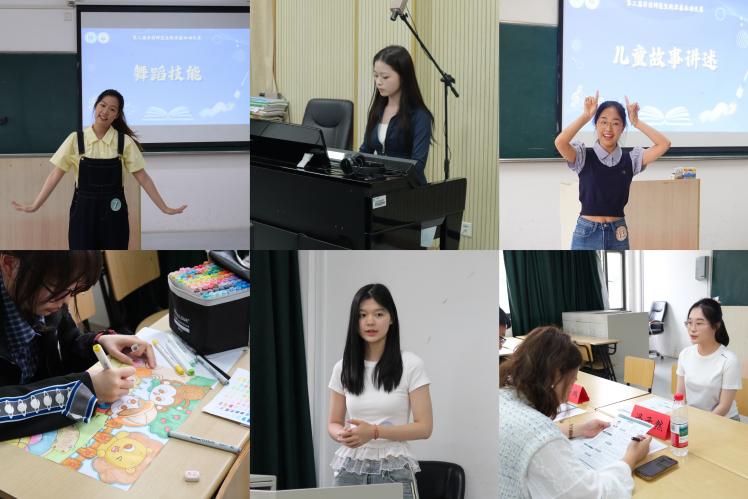 本次比賽共有116位學前學子報名參加了教學設計與說課、兒童故事講述、音樂技能彈唱、兒童舞蹈、兒童美術以及模擬面試等6個賽道的初賽,經(jīng)評審最終50名同學入圍決賽。評委老師對決賽選手的表現(xiàn)進行了細致入微的指導和點評,幫助學前師范生們進一步認識自身教學基本功中存在的問題,明晰改進方向,提升專業(yè)素養(yǎng)。