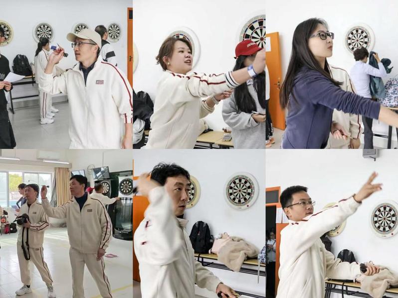 趣味運動會賽場,學(xué)前師生在各項目中展現(xiàn)風(fēng)采。飛鏢比賽區(qū),教師們屏息凝神,飛鏢精準(zhǔn)瞄準(zhǔn)靶心,每一次命中都引來現(xiàn)場陣陣喝彩;投籃賽場,男女教師踴躍上陣,屈膝、起跳、投球一氣呵成;踢毽子比賽,彩色毽子在教師腳尖上下翻飛,老師們專注而投入;足球繞桿項目中,教師們帶球穿梭于標(biāo)志桿間,急轉(zhuǎn)、繞桿動作自如切換,充分展現(xiàn)協(xié)調(diào)性和靈活性;滅火比賽中,老師們快速熟悉設(shè)備操作,在模擬場景中沉著應(yīng)對,既展現(xiàn)了應(yīng)急處置能力,也傳遞了“安全第一”的理念。