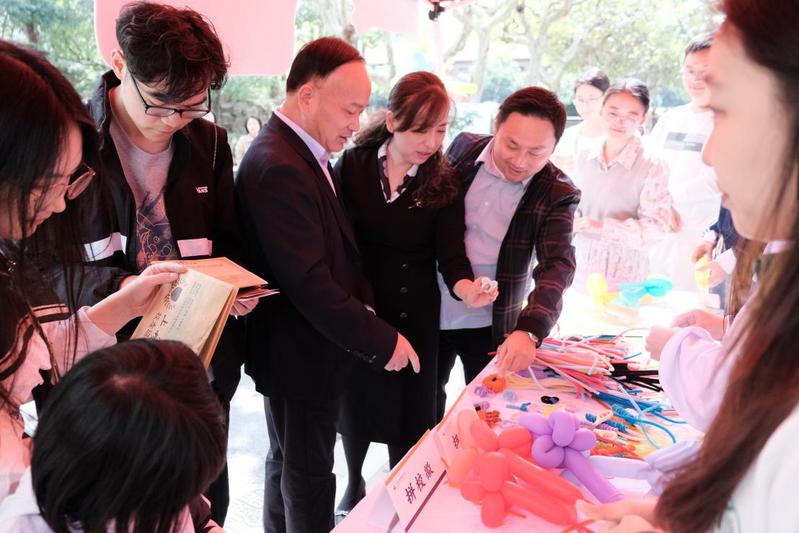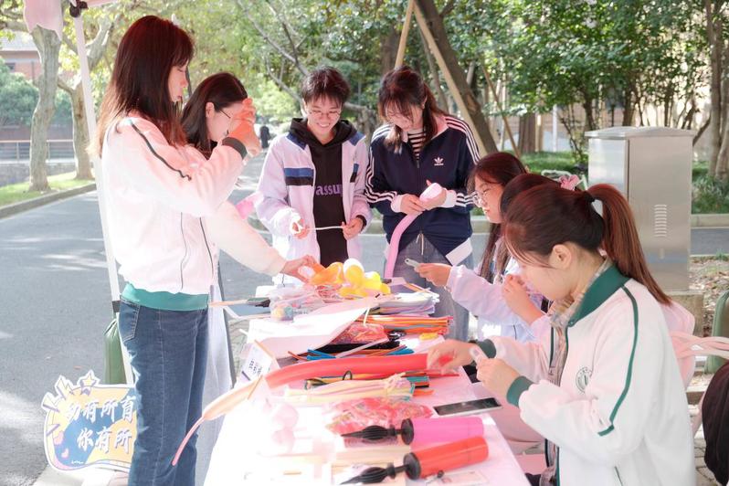 隨著返校人流增多,迎來(lái)校友打卡集章高潮。面對(duì)前來(lái)參與的校友,志愿者們熱情接待,耐心講解并引導(dǎo)校友們“拼校徽、扎氣球、扭彩棒”。