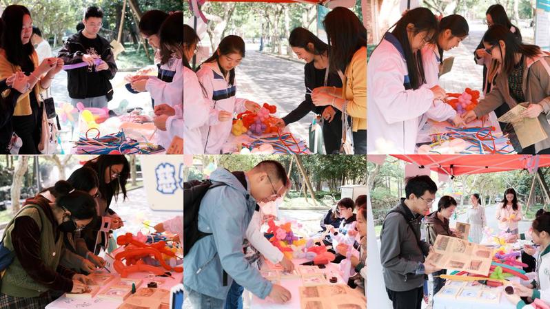 五顏六色的扭扭棒在校友手中翻飛,轉(zhuǎn)眼間化作小巧的花朵、可愛(ài)的動(dòng)物造型,每一件手工制品都承載著童年的純粹與創(chuàng)意;拼圖拼?;窄h(huán)節(jié)里,校友們?nèi)宄扇?,凝神聚力拼接碎片,?dāng)熟悉的?;胀暾尸F(xiàn),往昔在校園里的求學(xué)時(shí)光也隨之浮現(xiàn);扎氣球?qū)^(qū)前笑語(yǔ)盈盈,校友們將氣球扎成形態(tài)各異的作品,并紛紛合影留念。