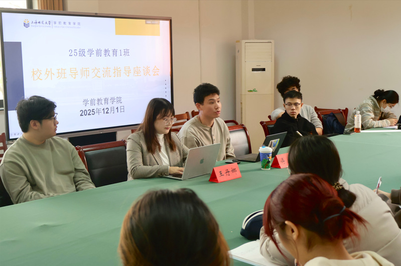 為充分凝結(jié)校友資源,落實(shí)學(xué)院校外班導(dǎo)師制度,12月1日,2025級(jí)學(xué)前教育1班的校外班導(dǎo)師、上海科技大學(xué)附屬民辦幼兒園大教研組長(zhǎng)傅毅老師來(lái)校開展交流。學(xué)院2025級(jí)輔導(dǎo)員王丹娜及25級(jí)學(xué)前教育1班31名本科生共同參與了此次座談會(huì)。