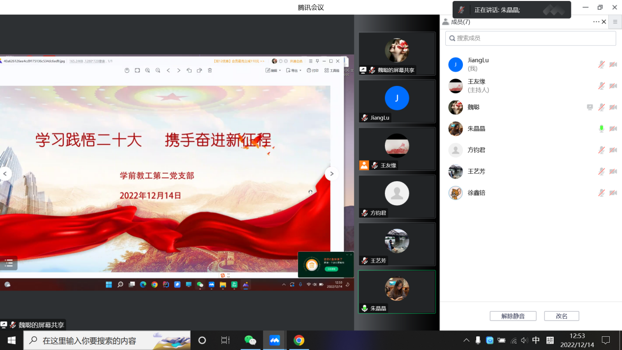 隨后,每位黨員老師從自身工作和學(xué)習(xí)中講述自己的感受和認(rèn)識(shí)。
