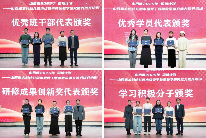 與會嘉賓為“參訪名園園長”“優(yōu)秀班干部”“優(yōu)秀學員”“學習積極分子”“研修成果創(chuàng)新獎”等獲獎代表頒獎,既是對學員們深耕不輟的肯定,更鐫刻了“以專業(yè)賦能成長,以初心澆灌教育”的研修初心。