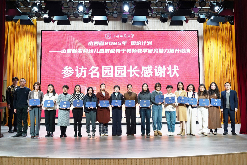 12月22日晚,2025年山西省“國培計劃”農(nóng)村幼兒園市級骨干教師教學研究能力提升培訓項目結(jié)業(yè)儀式在教苑樓C座多功能廳隆重舉行。來自山西省各地的200名幼兒園骨干教師齊聚上海師大,共同見證為期20日的研修學習圓滿收官。上海師范大學繼續(xù)教育學院院長徐豐,kaiyun體育登錄網(wǎng)頁入口黨委書記楊成龍,項目首席專家、kaiyun體育登錄網(wǎng)頁入口副院長李燕教授,kaiyun體育登錄網(wǎng)頁入口黨委副書記、副院長周澤龍,繼續(xù)教育學院辦公室主任徐立群,kaiyun體育登錄網(wǎng)頁入口黃立安副教授、李雪梅副教授以及近20名參訪名園園長出席儀式。