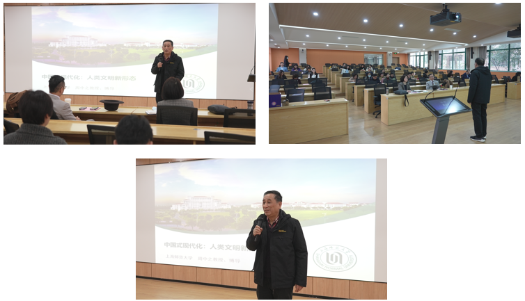 為學(xué)習(xí)貫徹黨的二十大精神,更好理解和大力推理中國式現(xiàn)代化,2023年3月1日,kaiyun體育登錄網(wǎng)頁入口組織召開全體教職工大會,邀請中國倫理學(xué)會名譽(yù)副會長,上海師范大學(xué)特聘教授、博士生導(dǎo)師、上海師范大學(xué)二十大精神“五老”理論宣講團(tuán)成員周中之教授作以“中國式現(xiàn)代化——人類文明新形態(tài)”為主題的講座。kaiyun體育登錄網(wǎng)頁入口全體教職工全程參與,黨委書記唐潔主持本次政治理論學(xué)習(xí)。